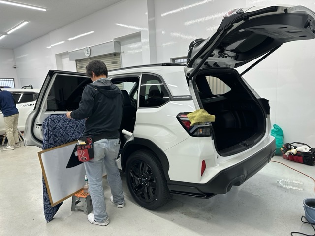 【フォレスター】断熱スモークカーフィルム(透過率5%)施工