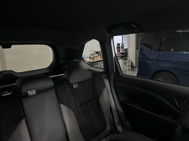 純正プライバシーガラスに透過率5%の断熱スモークカーフィルムを施工したので結構黒くなりプライバシーの確保にはちょうどいい暗さだと思います。