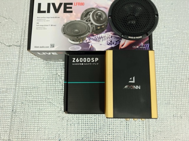 以上を踏まえて選んだ商品はリアスピーカーにBLAMの8cmスピーカーLFR80とADONNのアンプ内蔵DSP Z600DSPの組み合わせとなります。