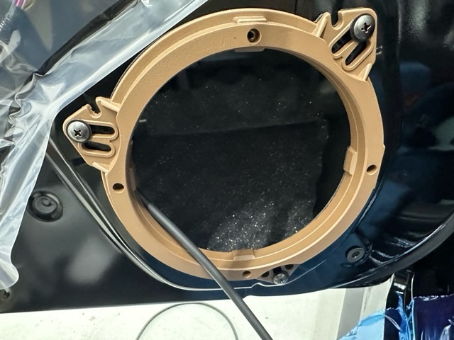 純正スピーカーを外して『Reference AM Trio』のスピーカーを取付けするのですが、そのままでは付かないためにインナーバッフルをドア側に固定してからインナーバッフルにスピーカーの固定します。