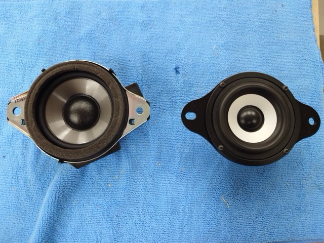 左が純正のスコーカーで右が交換するReference AM Trioのスコーカーです。