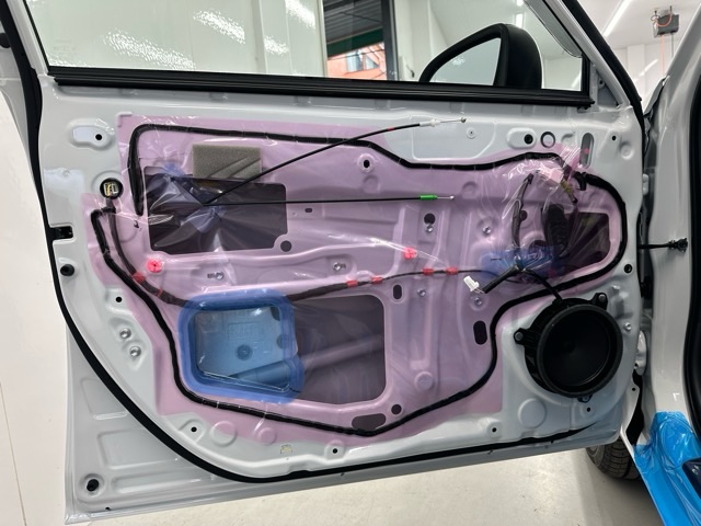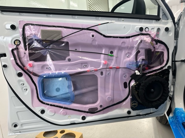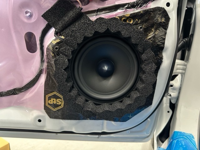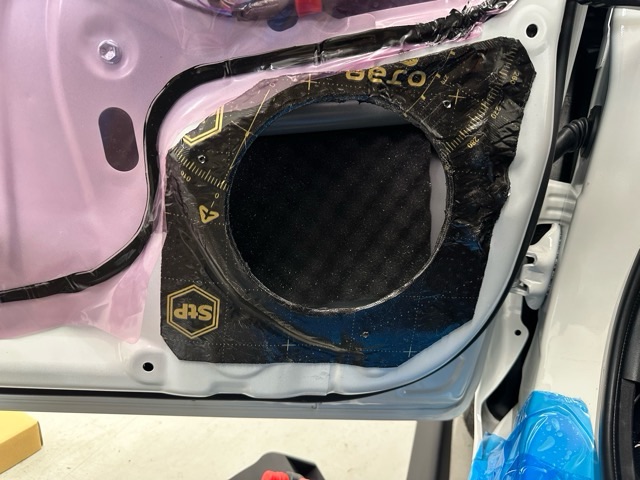 スピーカー取付穴の周りにはライトデッドニングとして「StP Aero」制振シートを貼合し、効率よくサウンドを奏でられるようにスピーカーの振動を抑えます。