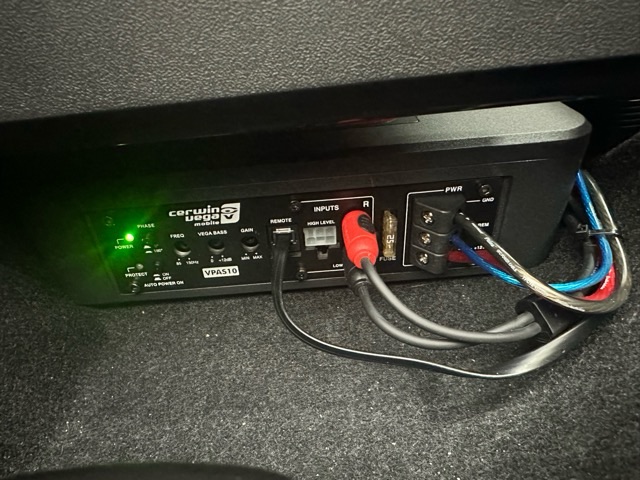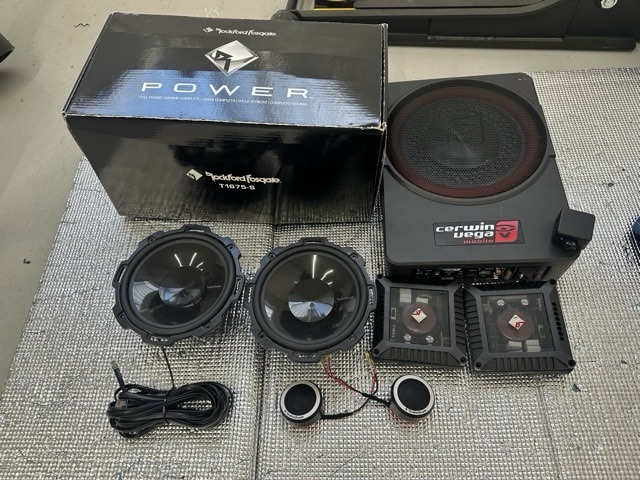 スピーカーはロックフォードのセパレートスピーカー『T1675-S』、チューンナップウーハーはcerwin vega 25cmパワードサブウーファー『 VPAS10』です。