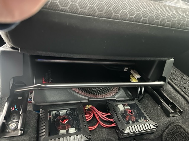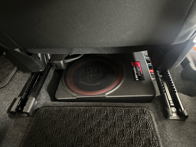 チューンナップウーハーとパッシブネットワークは運転席のシート下に設置しました。