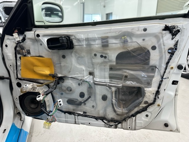 お客様からのご依頼は、純正オーディオからのサウンドアップでスピーカーの交換です。