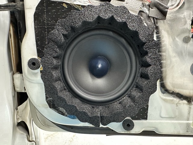 スピーカー取付穴の周りにはライトデッドニングとして「StP Aero」制振シートを貼合し、効率よくサウンドを奏でられるようにスピーカーの振動を抑えます。