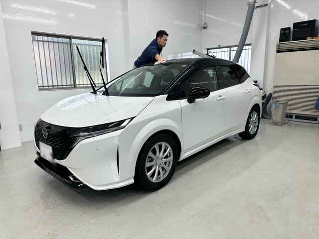 続いて、ニッサンノートはフレッシュキーパーの施工中です。