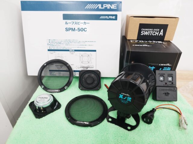 ロック音とアルパインのルーフスピーカーSPM-50Cの取付けです。