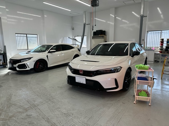 今日の作業は、2台のシビックタイプ(新車と愛用車)はキーパーコーティングのダイアⅡプレミアム仕様とダイヤモンドキーパープレミアム仕様の施工と