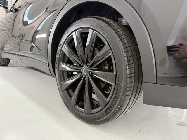 アルミホイールには質感たっぷりのツヤと強力な水ハジキを実現する「ホイールコーティング」を施工しています。