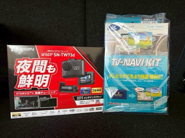 続いてドライブレコーダーはユピテルの指定店モデル『SN-TW73d』とテレビキットはデータシステムのスイッチタイプです。
