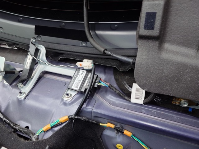 特に加工等も必要なくコネクターで割り込ませるだけなので、車両の助手席側背もたれの後ろのパネルを外して電動ルーフのユニットへアクセスしスマートトップ本体を取付!