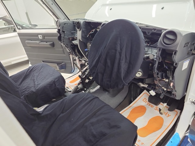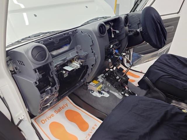 今回カーセキュリティはご紹介しませんがカーセキュリティのインストールは内装をバラバラにして行う為に、今回ご紹介する商品はこの状態から取付けを開始します。