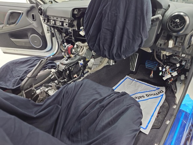 当店ではわからない様な所で性能はしっかり機能するようにセキュリティーのハーネスは車両純正ハーネスと同化して取付け。