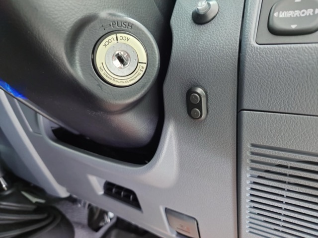 まさかの状況でも簡単には解除できない暗証番号式のバレースイッチは使用する機会がある場合の事も考えて、ステアリング横へ取り付け