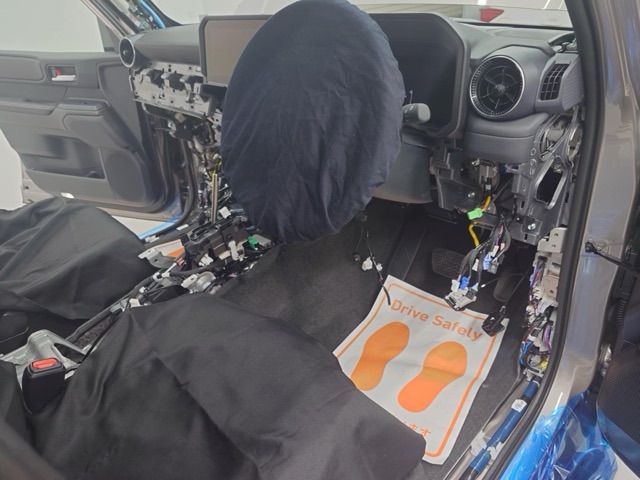 施工中の画像ですが、配線やセンサーなど安易にはわからないようにバラバラな状態にして作業を行っています。