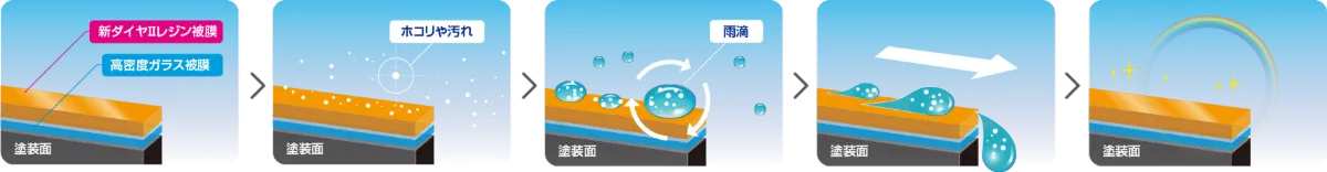 雨が降れば、まるで洗車したかのようにキレイになる自浄効果、洗車回数・激減!