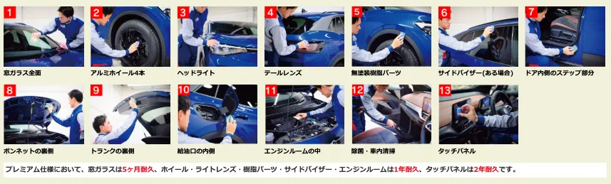 ※効果・持続期間は目安です。あらゆる実車状態・使用状況での効果・持続期間の確認はしておりません。
